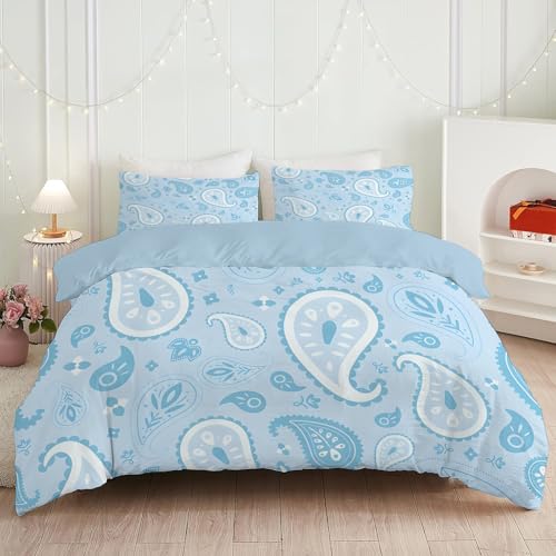 Aisbo Bettwäsche 135x200 4teilig Blau - Mikrofaser Bettwäsche-Sets Hellblau mit Reißverschluss, ÖKO-TEX Bettbezug 135 x 200 cm 4tlg mit Kissenbezug 80x80 cm, Weich und Bügelfrei